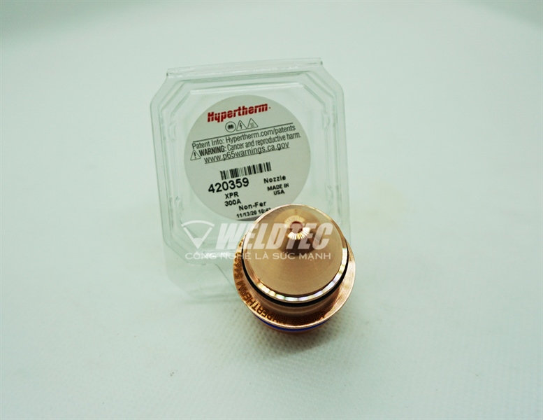 - Bép cắt plasma 420359 chính hãng Hypertherm là vật tư tiêu hao cho dòng máy cắt XPR. Giá trị tuổi thọ của sản phẩm theo khuyến cáo của hãng Hypertherm lâu hơn phụ kiện không chính hãng từ 1.5-2 lần.