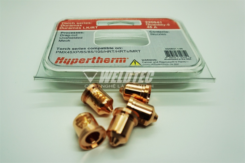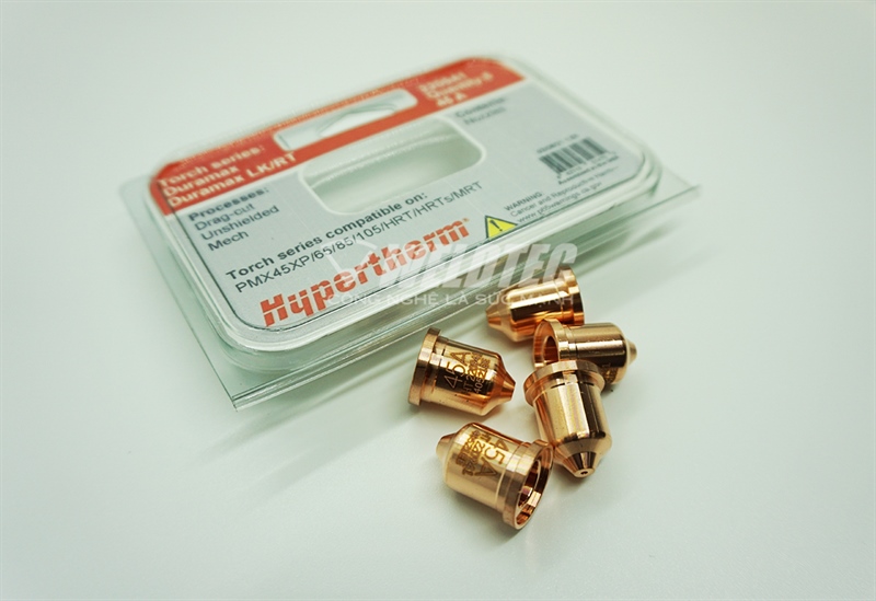 - Bép cắt plasma PMX45A 220941 chính hãng Hypertherm là vật tư tiêu hao cho dòng máy cắt PMX65/85/105. Giá trị tuổi thọ của sản phẩm theo khuyến cáo của hãng Hypertherm lâu hơn phụ kiện không chính hãng từ 1.5-2 lần.