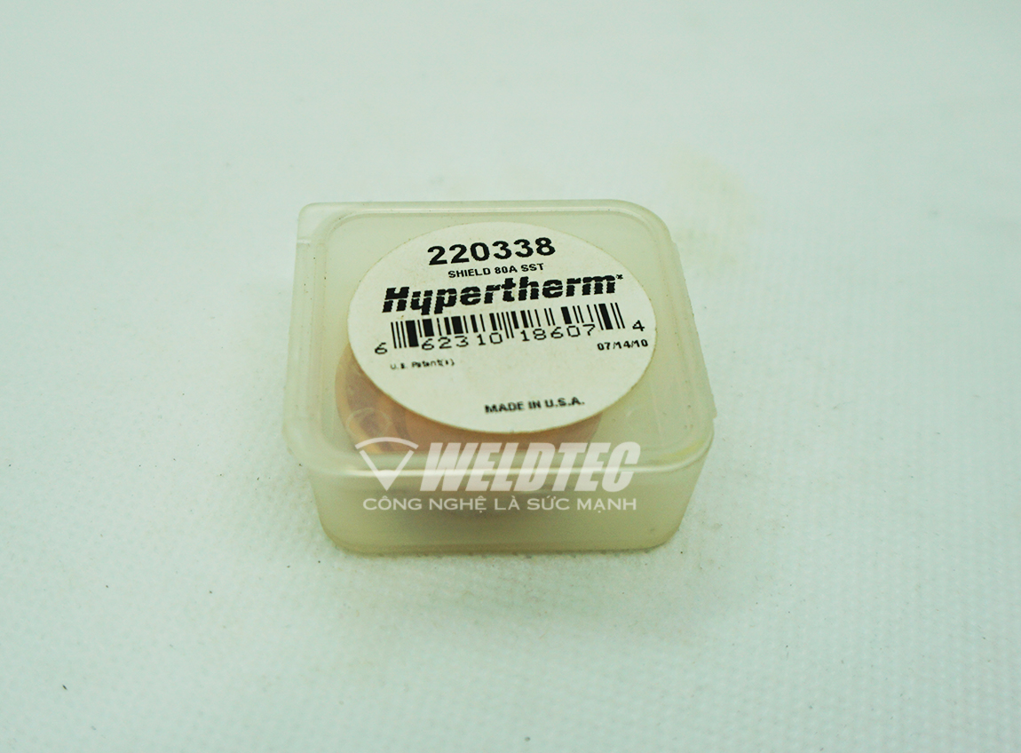 - Chụp bảo vệ bép cắt plasma 80A 220338 chính hãng Hypertherm là vật tư tiêu hao cho dòng máy cắt HPR260, 130, HD4070, 3070. Giá trị tuổi thọ của sản phẩm theo khuyến cáo của hãng Hypertherm lâu hơn phụ kiện không chính hãng từ 1.5-2 lần.