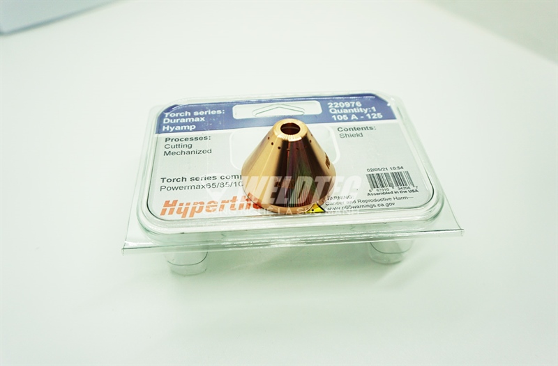 - Chụp bảo vệ bép plasma 220976 chính hãng Hypertherm là vật tư tiêu hao cho dòng máy cắt PMX125. Giá trị tuổi thọ của sản phẩm theo khuyến cáo của hãng Hypertherm lâu hơn phụ kiện không chính hãng từ 1.5-2 lần.