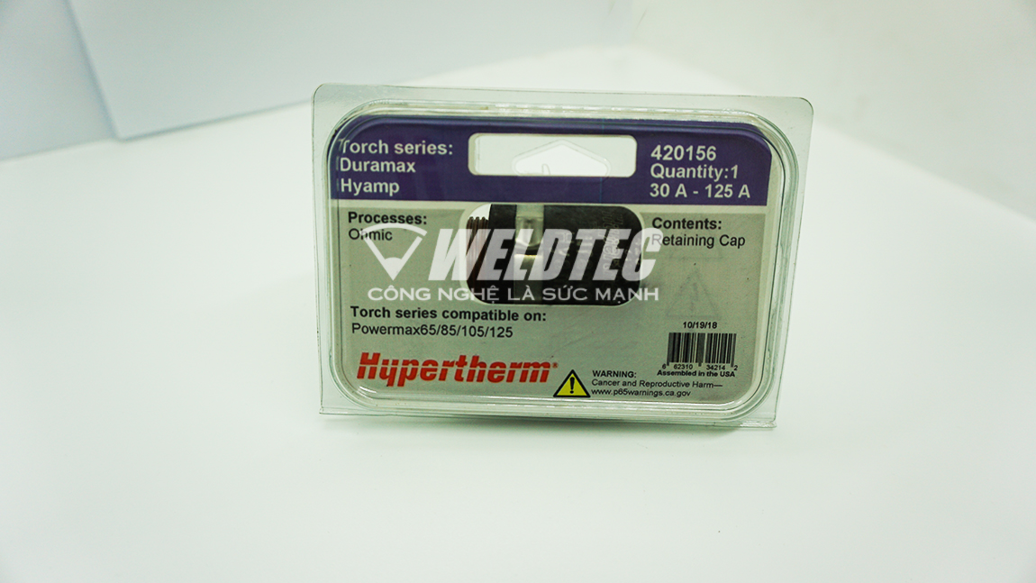 - Chụp bảo vệ mỏ cắt kim loại plasma 420156 chính hãng Hypertherm là vật tư tiêu hao cho dòng máy cắt plasma Powermax 125 . Giá trị tuổi thọ của sản phẩm theo khuyến cáo của hãng Hypertherm lâu hơn phụ kiện không chính hãng từ 1.5-2 lần.