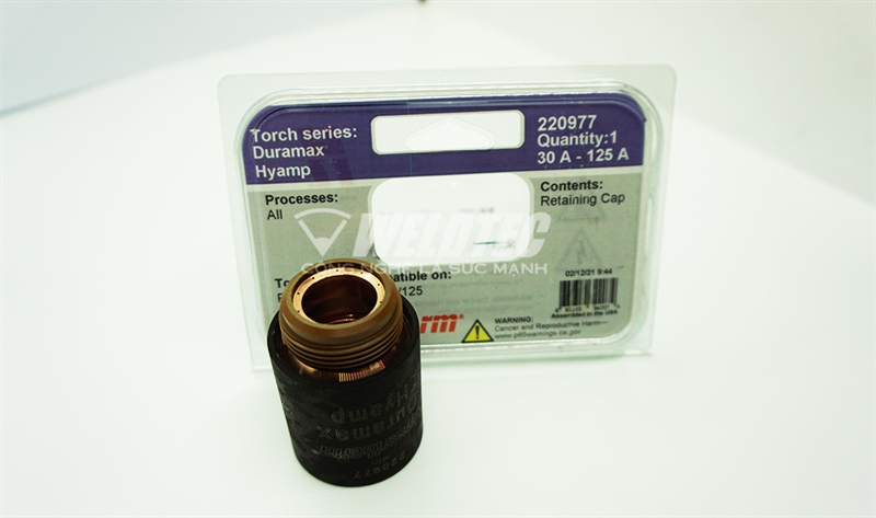 - Chụp bảo vệ mỏ Duramax 220977 chính hãng Hypertherm là vật tư tiêu hao cho dòng máy cắt Powermax 125. Giá trị tuổi thọ của sản phẩm theo khuyến cáo của hãng Hypertherm lâu hơn phụ kiện không chính hãng từ 1.5-2 lần.