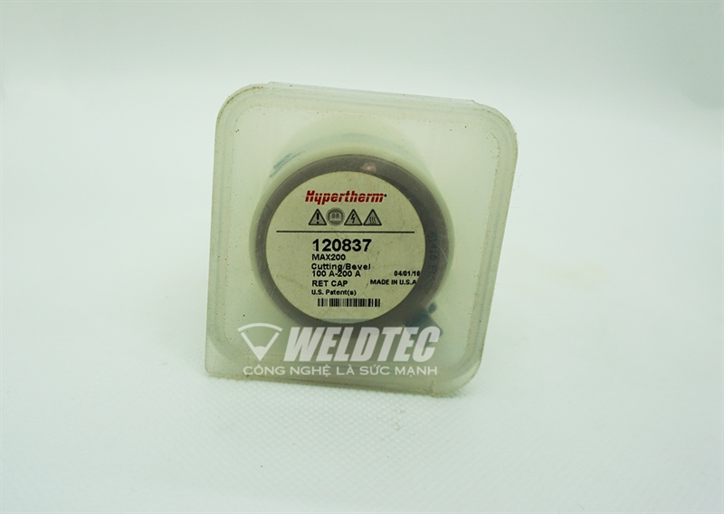 - Chụp bảo vệ mỏ LM 120837 chính hãng Hypertherm là vật tư tiêu hao cho dòng máy cắt plasma MAX200. Giá trị tuổi thọ của sản phẩm theo khuyến cáo của hãng Hypertherm lâu hơn phụ kiện không chính hãng từ 1.5-2 lần.