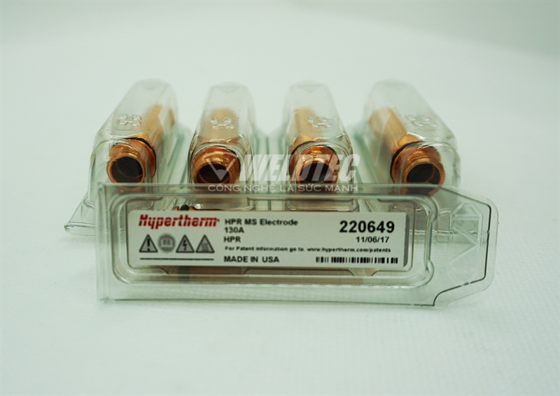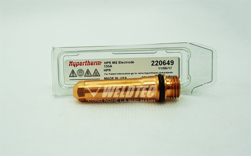 Đầu cắt plasma 220649 là sản phẩm chính hãng Hypertherm Mỹ, là vật tư tiêu hao cho dòng máy cắt HPR chuyên dùng cho cắt vát mép. Giá trị tuổi thọ của sản phẩm theo khuyến cáo của hãng Hypertherm lâu hơn phụ kiện không chính hãng từ 1.5-2 lần.